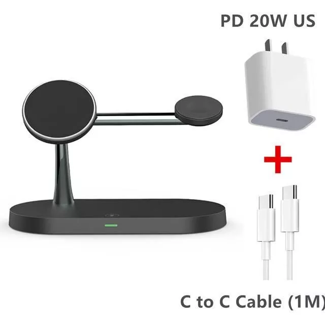 Introducing our innovative Magnetic Wireless Charging Stand, engineered to provide a seamless and swift charging solution for your entire Apple ecosystem. This powerful 15W charger is designed to cater to your iPhone 14, 13, 12, iWatch, and AirPods, ensuring that all your devices stay powered up and ready to go. Its compact and sleek design not only saves space but also adds a touch of elegance to your desk or bedside table.