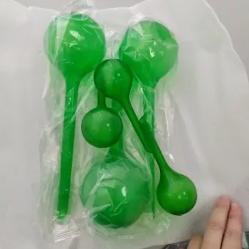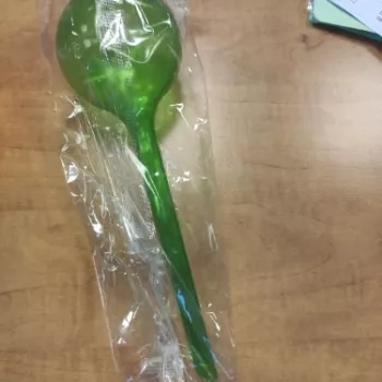 These are sturdy green plastic watering bulbs, easy to fill right at your kitchen tap and sure are a great time saver. My plants are thankful that I ordered them since they are getting better attention now! I only have to go around once a week to check these bulbs and refill if needed.